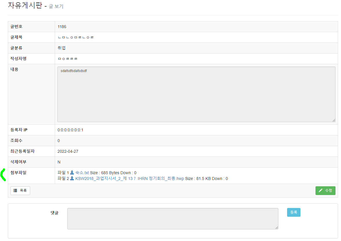 글 수정 시 원래있던 첨부파일들을 변경하거나 추가, 삭제 하게 될 것이다.