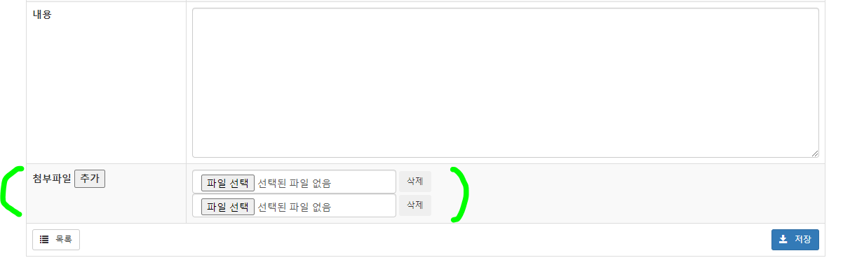 freeForm처럼 첨부파일 추가,삭제 태그에 대한 이벤트를 걸어줘야한다.