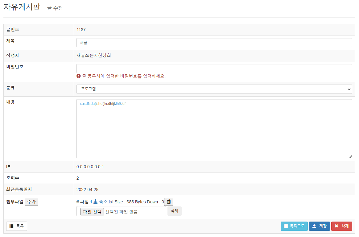 글 수정 시 원래있던 첨부파일들을 변경하거나 추가, 삭제 하게 될 것이다.