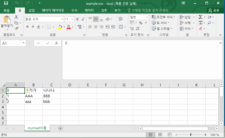 간단하게 임시데이터를 넣은 excel.xlsx 파일을 다운로드 받아보자.