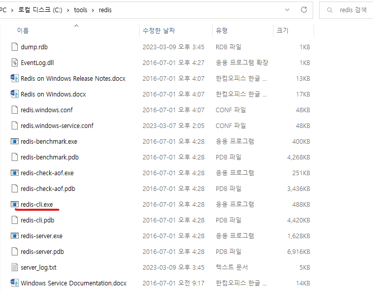 설치된 폴더에 가서 redis-cli.exe를 실행해보자