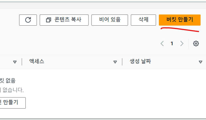 AWS 검색창에 S3를 입력한 후 버킷 만들기 버튼을 누릅니다.