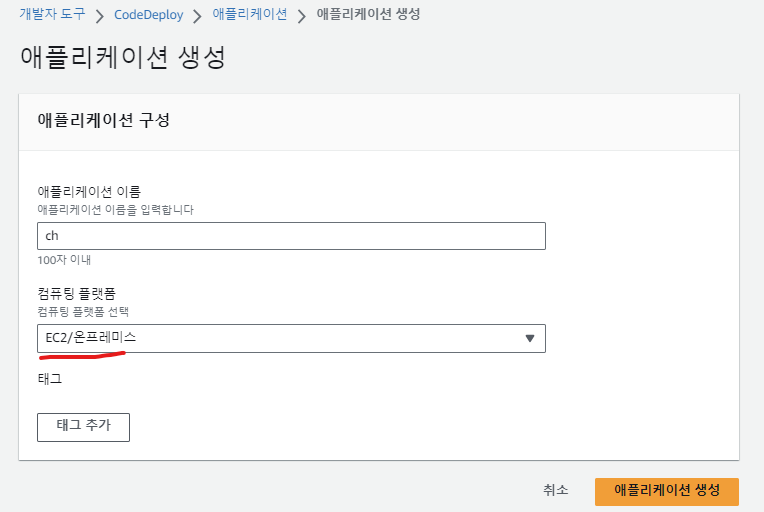 이름은 ch, 컴퓨팅플랫폼은 EC2/온프레미스를 선택합니다.