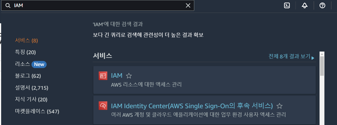 검색창에 IAM 검색 - 역할 - 역할만들기 순으로 진행합니다.