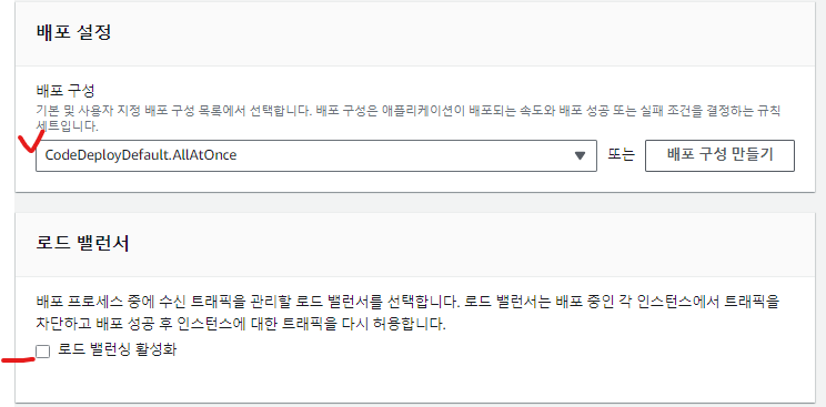 배포 설정의 배포구성은 AllAtOnce를 선택합니다.