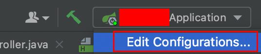 2-1) 상단에 Application 에서 Edit Configurations 를 클릭하여 “Run/Debug Configurations” 설정 창을 띄웁니다.