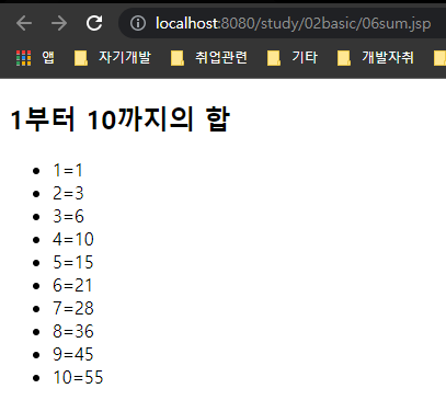 사실 브라우저에서 url요청 후 06sum.jsp의 결과화면이 나온다.