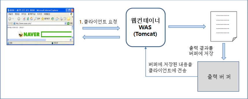 출력버퍼는 위 jsp처리과정의 3 응답전송부분에 해당한다.