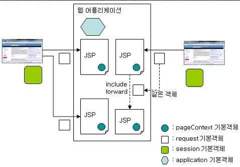 이 기본객체가 jsp실행 도중 어디서부터 어디까지 영향을 미치는지에 대한