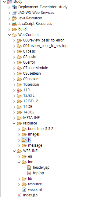 bootstrap, js폴더는 /WebContent/resource 폴더에
