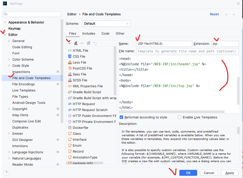 인텔리제이에서 템플릿 적용하기
