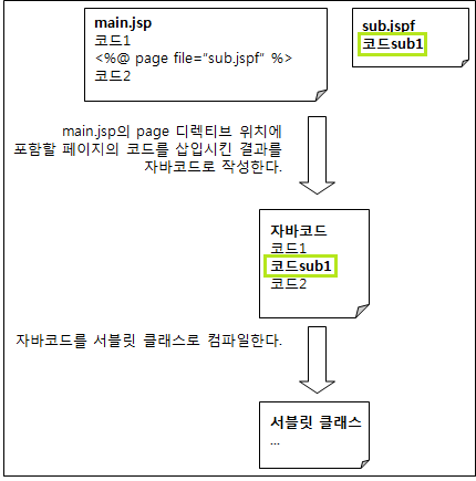서버는 main.jsp안에 sub.jsp내용을 포함시켜서 응답한다.