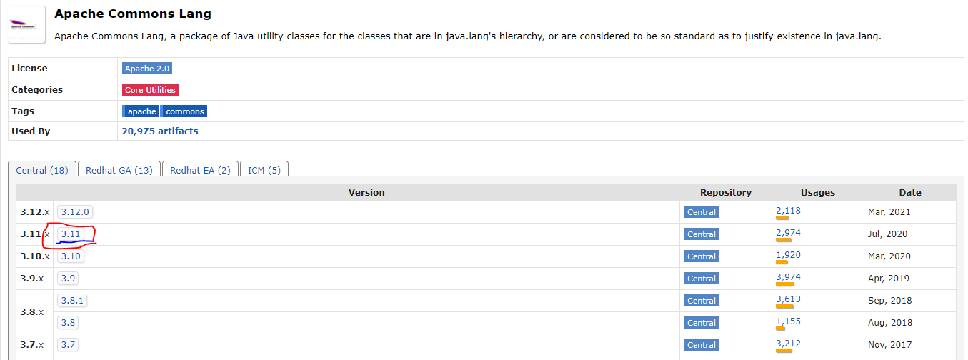 maven repostiroy 홈페이지에서 lang3를 검색해
