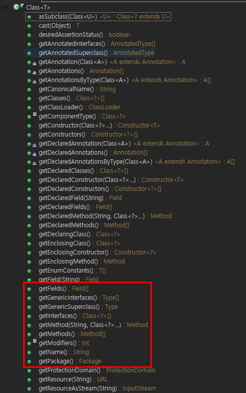 Class 클래스 내부의 메서드를 보시면 이해가 편하실 겁니다.