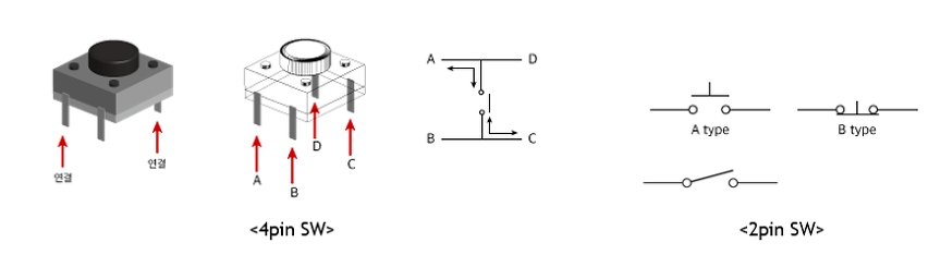 4핀스위치,2핀 스위치가 있다.