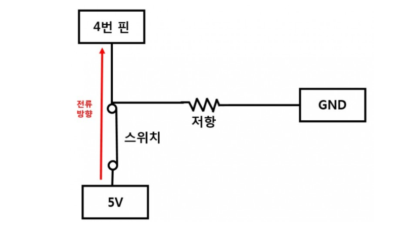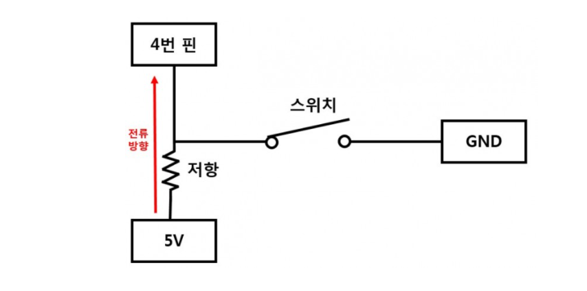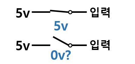 풀업 : 스위치를 기준으로 입력전압쪽에 저항 연결
