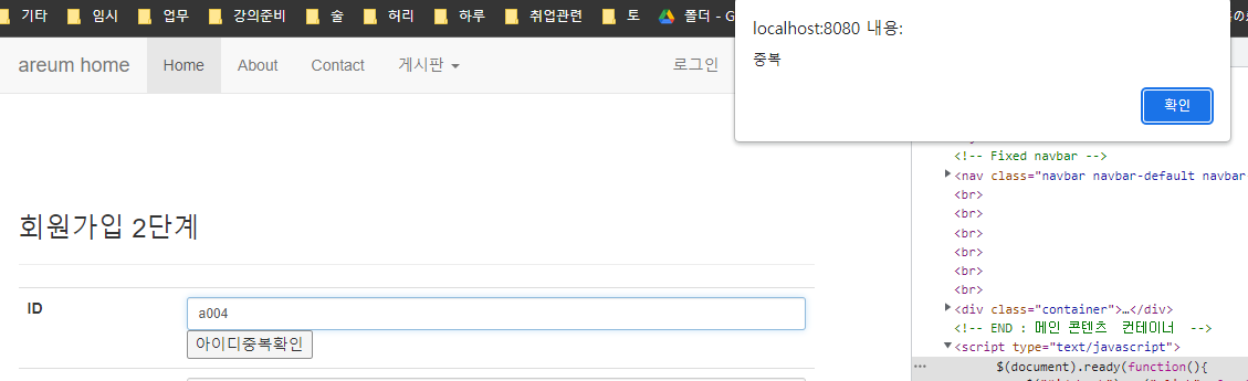 사실,아이디의 중복 여부는 "아이디 중복 확인" 버튼을 눌러서 alert창으로