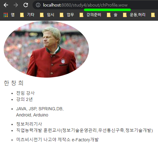 이는 /about/chProfile.wow에 요청에 대한 결과화면이다.