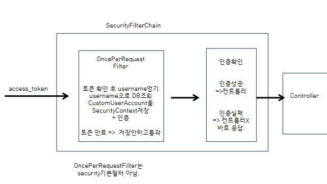 매 요청마다 이런과정을 거쳐야하기 때문에 OncePerRequestFilter를 상속받은 필터를 만들어
