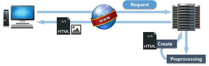 2. 이 때 서버는 미리 페이지(html 등)를 미리 만들어 놓은 상태이고