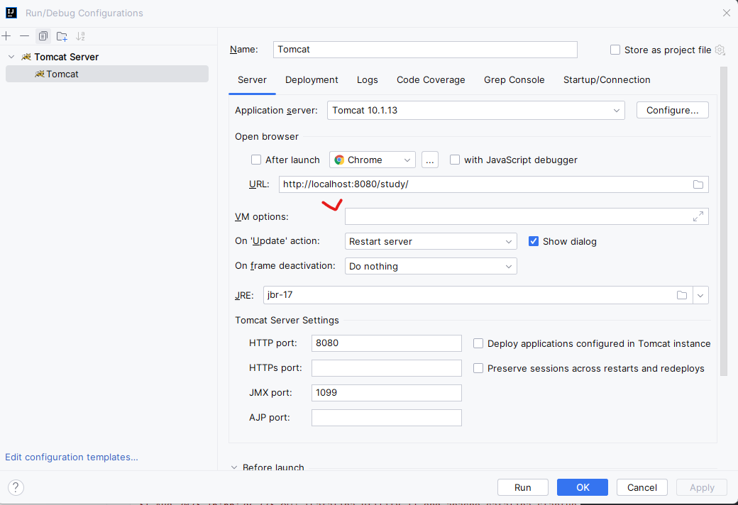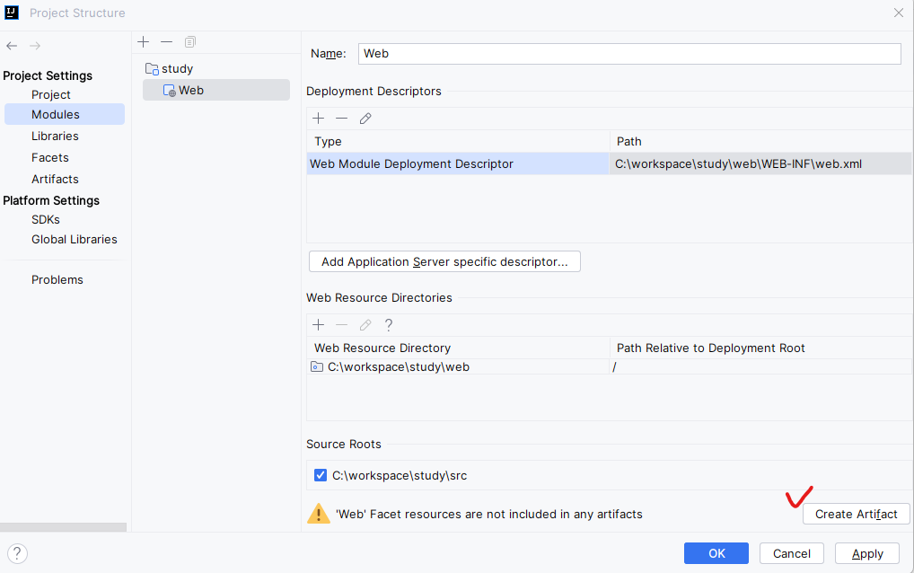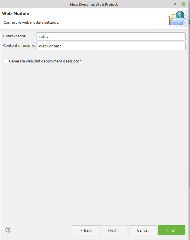 마지막 Contenxt root 는 sutdy (기본은 프로젝트 이름이랑 동일)