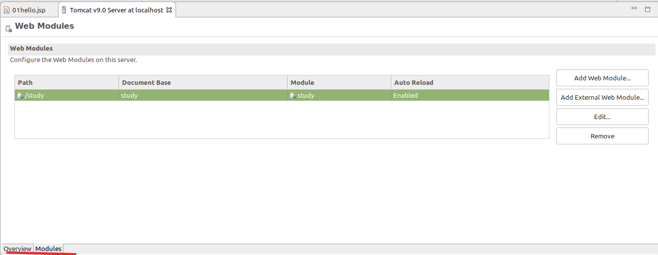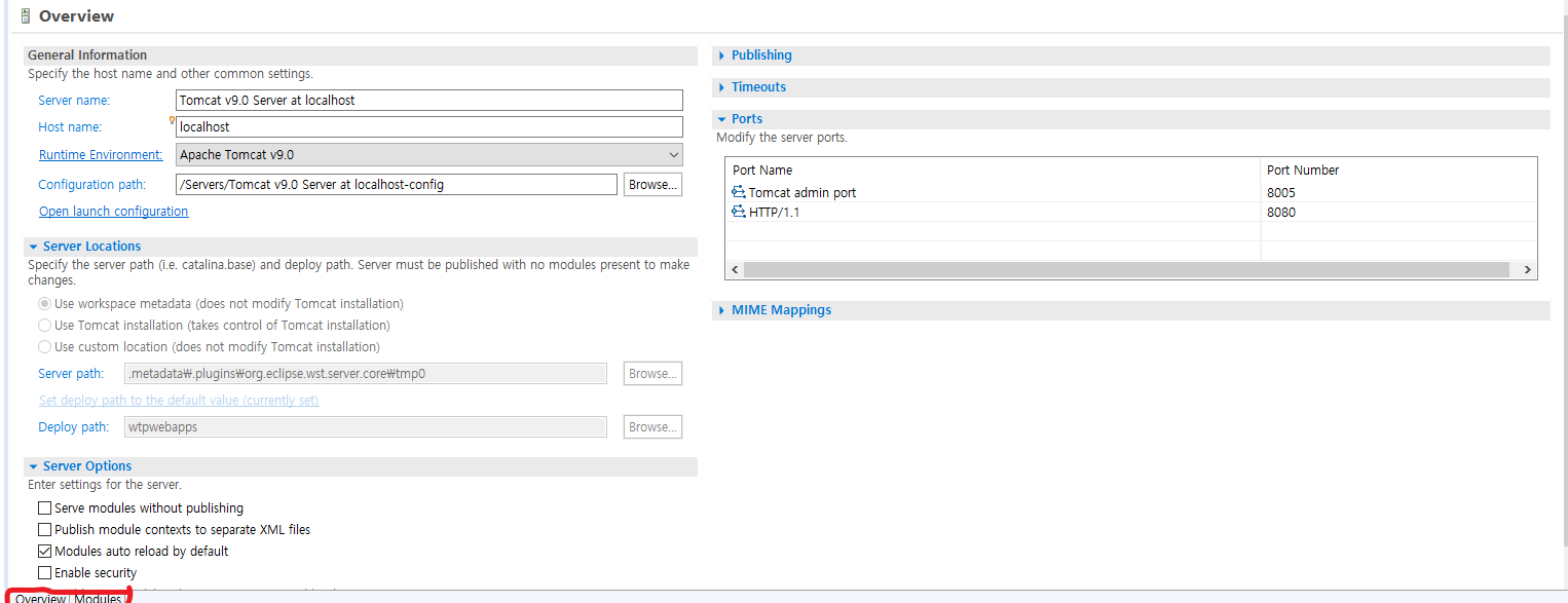 tomcat을 더블클릭한 후 톰캣서버 Overview화면에서