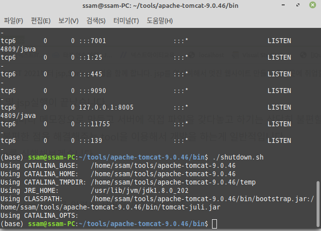 cmd에서 ./shutdown.sh를 입력해 서버를 꺼주겠습니다.