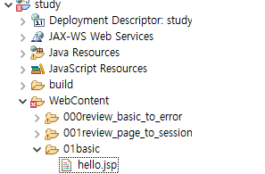 프로젝트에서 WebContent밑에서 01basic폴더를 만듭니다.