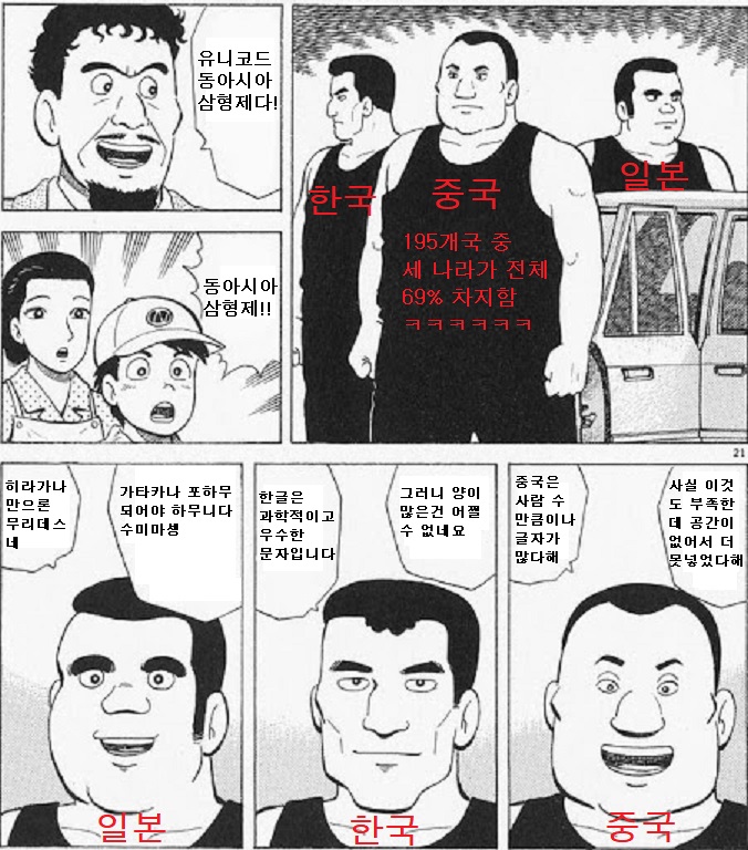 표의문자인 한자를 사용하는 중국과 한자를 히라가나와 함께 혼용하는 일본입니다. 정말 재미있게도 한자문화권인 이 동아시아 삼개 국가가 BMP영역의 69%를 차지하고 있습니다. 이렇게 보니 정말 엄청난 욕심쟁이들네요. ^0^ ㅋㅋㅋㅋ