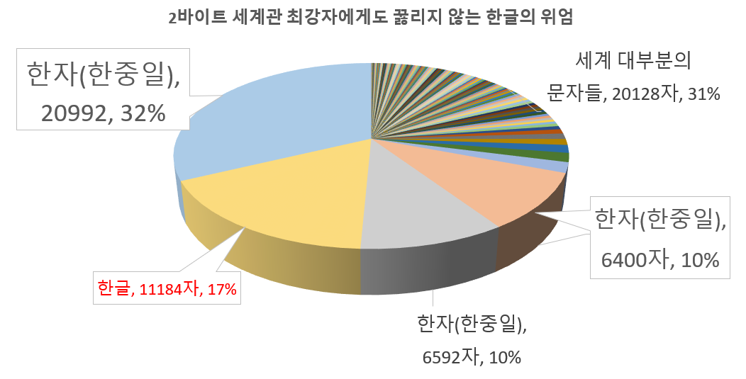 비중이 높을까요? 낮을까요? 놀라지 마세요~! 한글은 BMP 영역의 무려 17%나 차지하고 있답니다!!!!