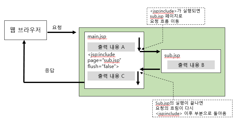 서버는 main.jsp안에 sub.jsp내용을 포함시켜서 응답한다.