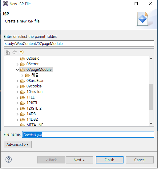 그리고나서 새로 jsp를 만들 때 이 화면에서 next를 누르면