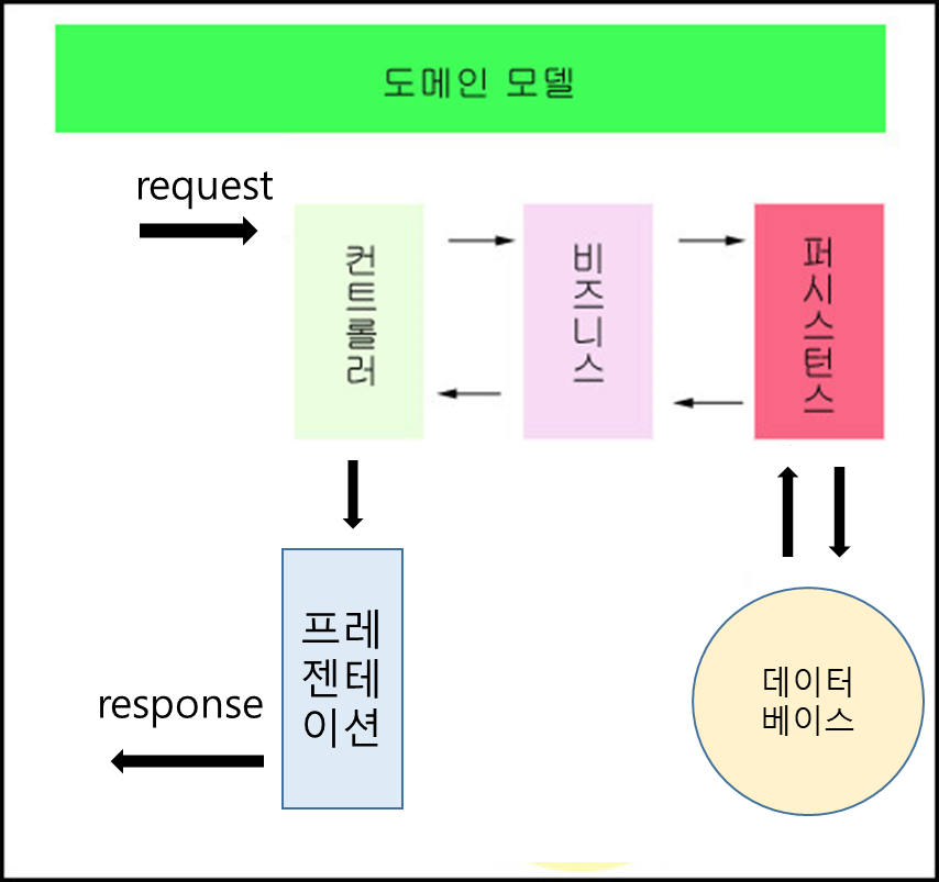 사용자로부터 요청을 받고 응답을 처리하는 계층이다.하위 계층에서 발생하는 Exception이나 Error에 대한 처리를 맡으며,최종 프레젠테이션 계층에 표현 해야할 도메인 모델을 엮는 기능을 수행한다.사용자로부터 전달 받은 데이터의 유효성 검증을 처리하고, 전체 시스템의 설정상태를 유지한다.요청에 해당하는 비지니스 로직을 결정하는 역할을 수행한다.사용자의 요청을 검증, 로직에 요청을 전달, 로직에서 반환된 응답을 적절한 뷰로 연결한다.