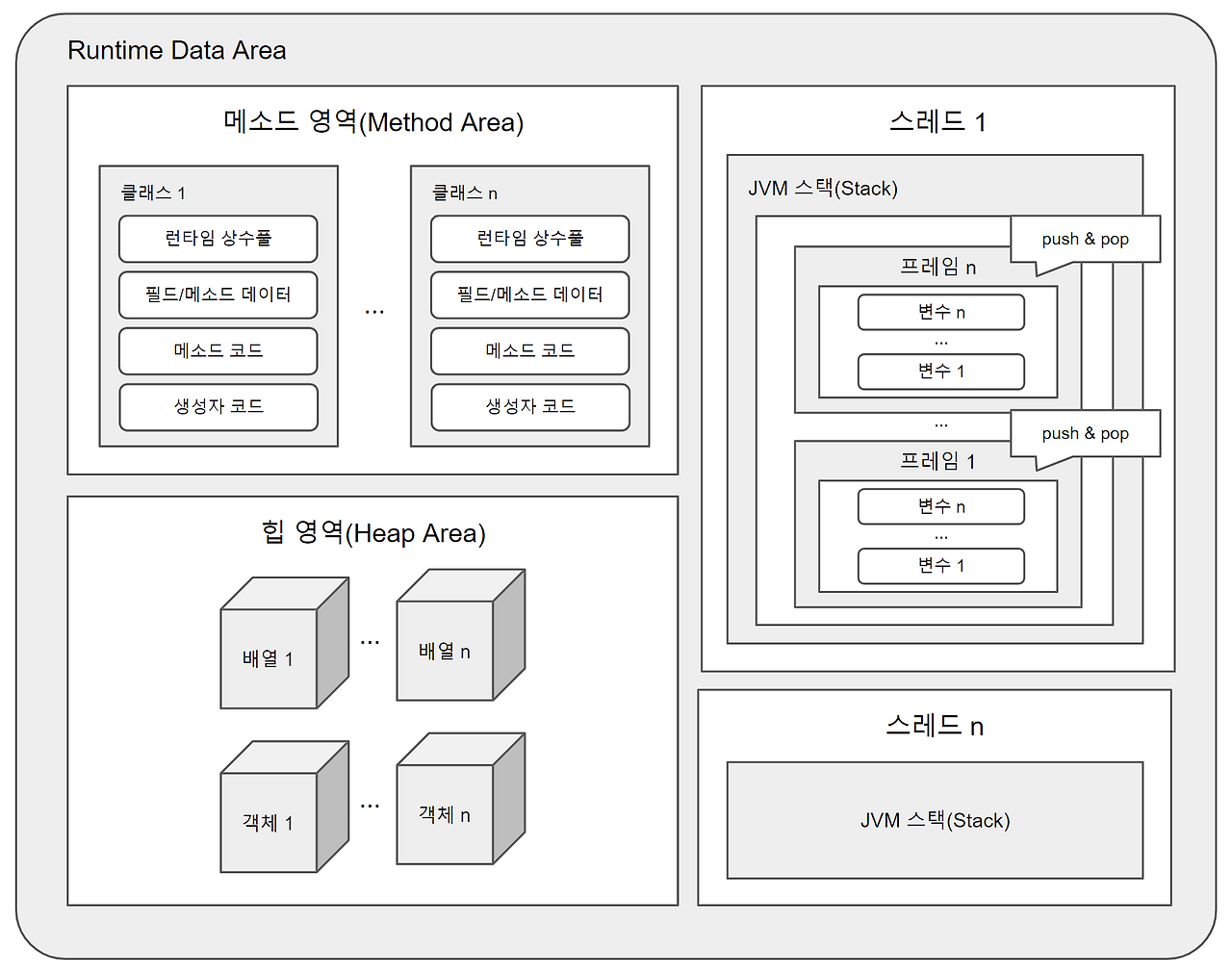 위와 같은 코드를 실행하기 위해서 JVM는 코드를 한줄 씩 읽어가면서