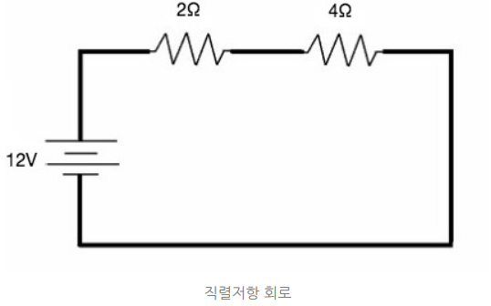 앞서 옴의법칙 예제에서는 저항이 1개만 있었는데 실제 회로에서는 저항이 여러개인경우가 대부분입니다.