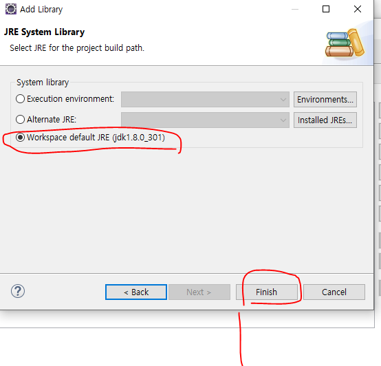 프로젝트 우클릭-properties- Java-Build-path에서 기존의 JRE System Library가 jre로 되어있다면 jdk로 바꿔주자.(1.8로)