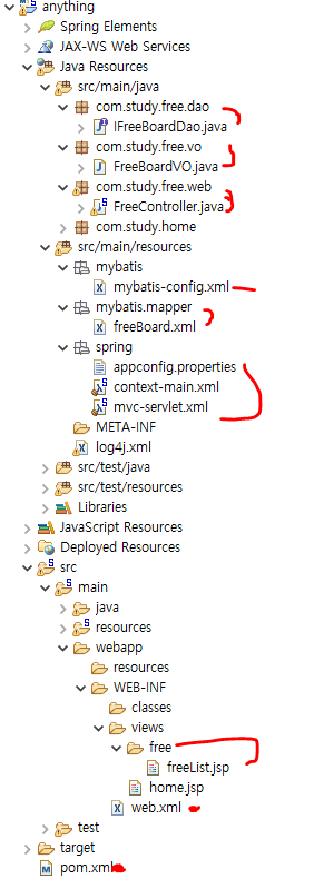 다음은 기본 게시판을 만드는데 필요한 lib를 위해 pom.xml이다. 만들어진 프로젝트에 복사하자.