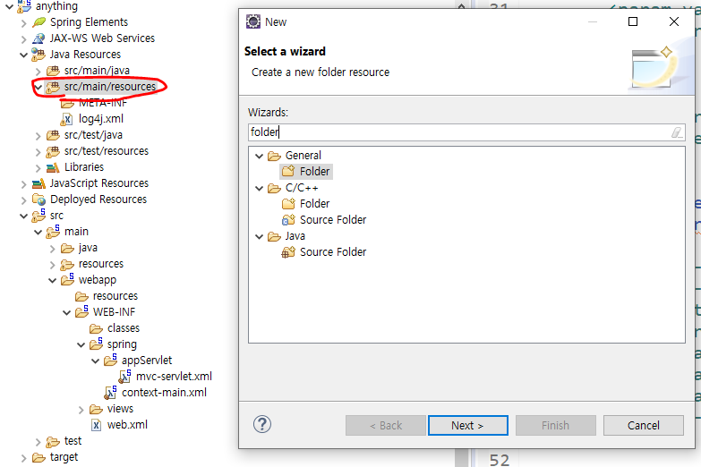 new-other를 클릭한 후 spring을 검색, spring legecy 프로젝트 선택