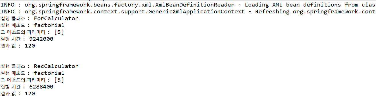 ForCalculator의 factorial 실행할 때 적용되는 공통관심사가 2개라고 가정해보자.