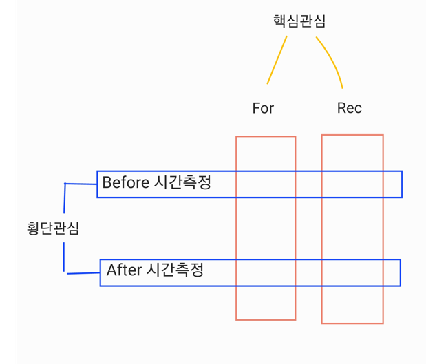 AOP의 기본 개념은 핵심 기능(factorial)에 공통 기능(시간측정)을 삽입하는 것이다.