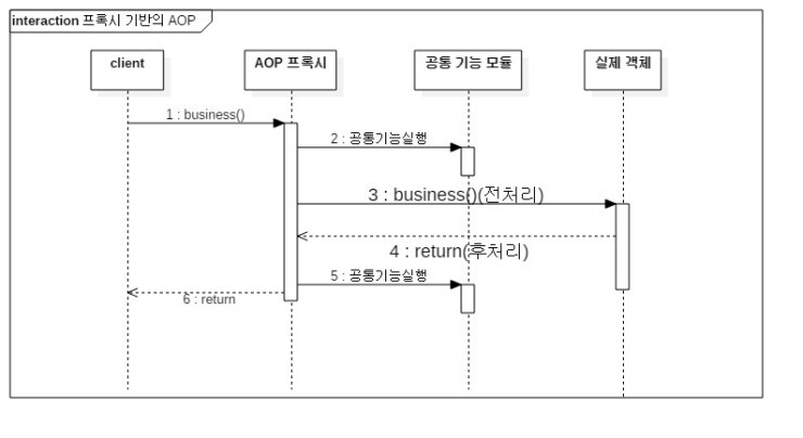 그리고 다음 그림처럼 실제 객체의 기능을 사용하기 전 · 후에 공통 기능을 호출한다.