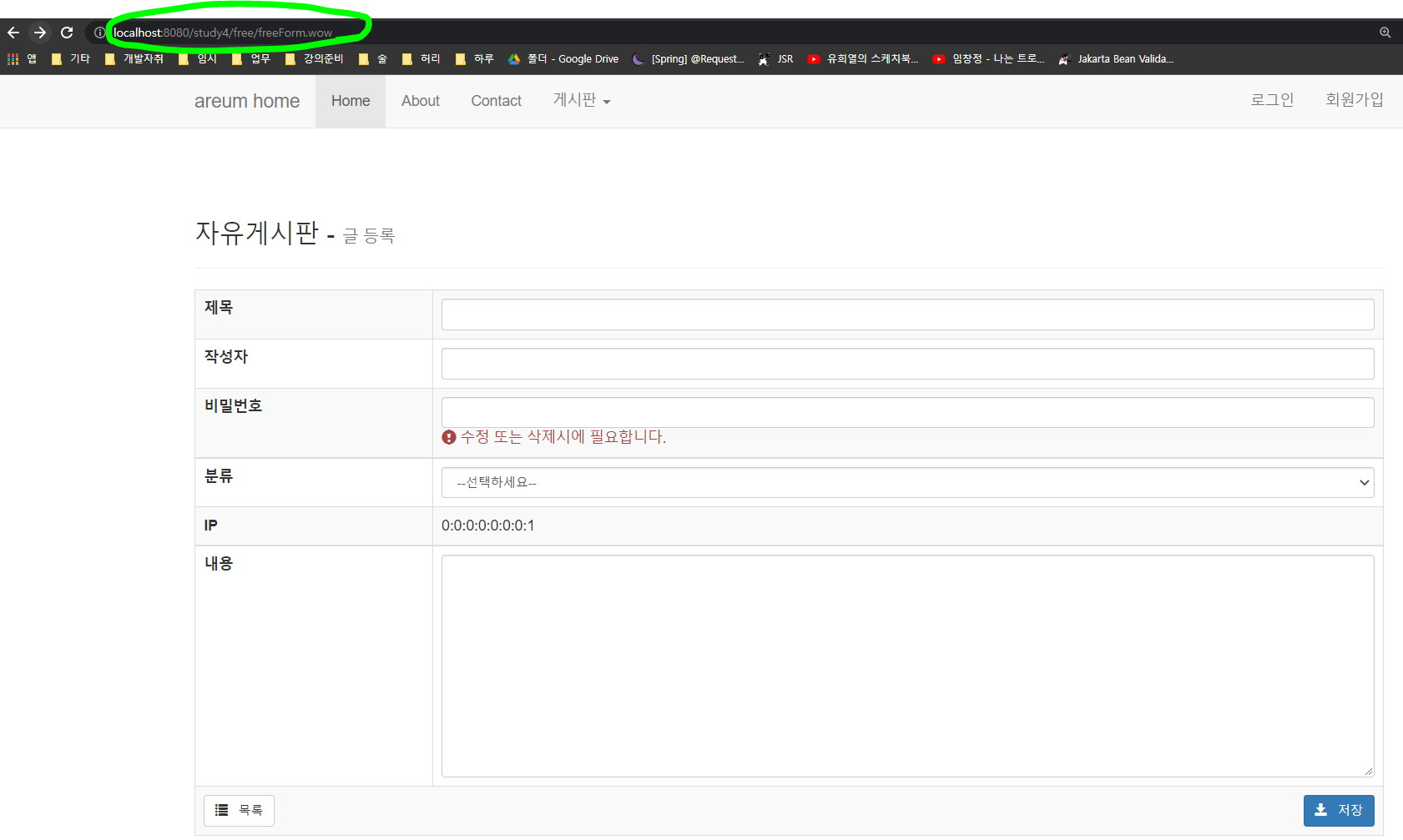 지금까지한건 freeForm,freeRegist 상황에서의 validation 검사였다.
